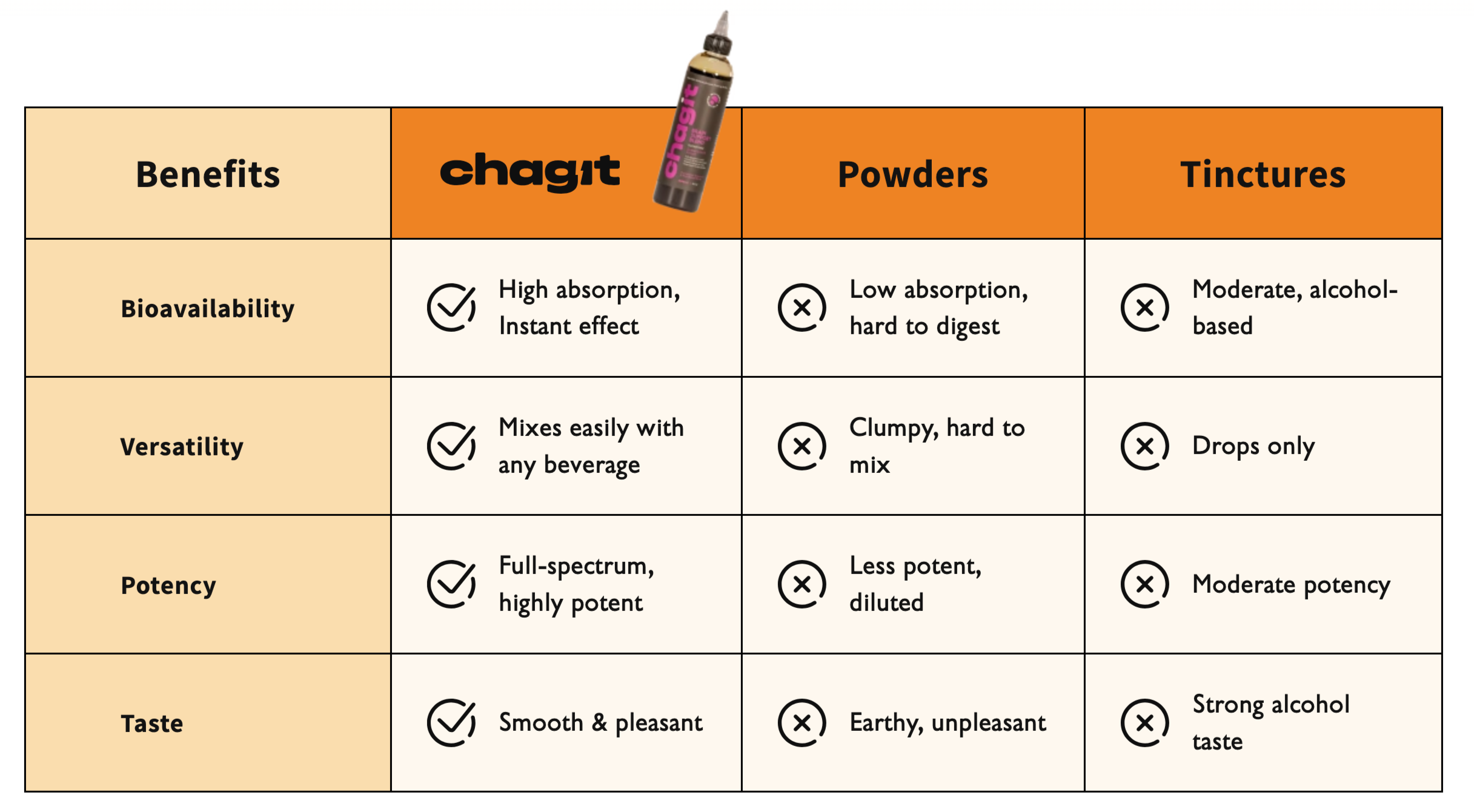 Premium extracts of chaga and other functional mushrooms and superfoods, crafted to help boost your immunity, energy, focus and vitality.