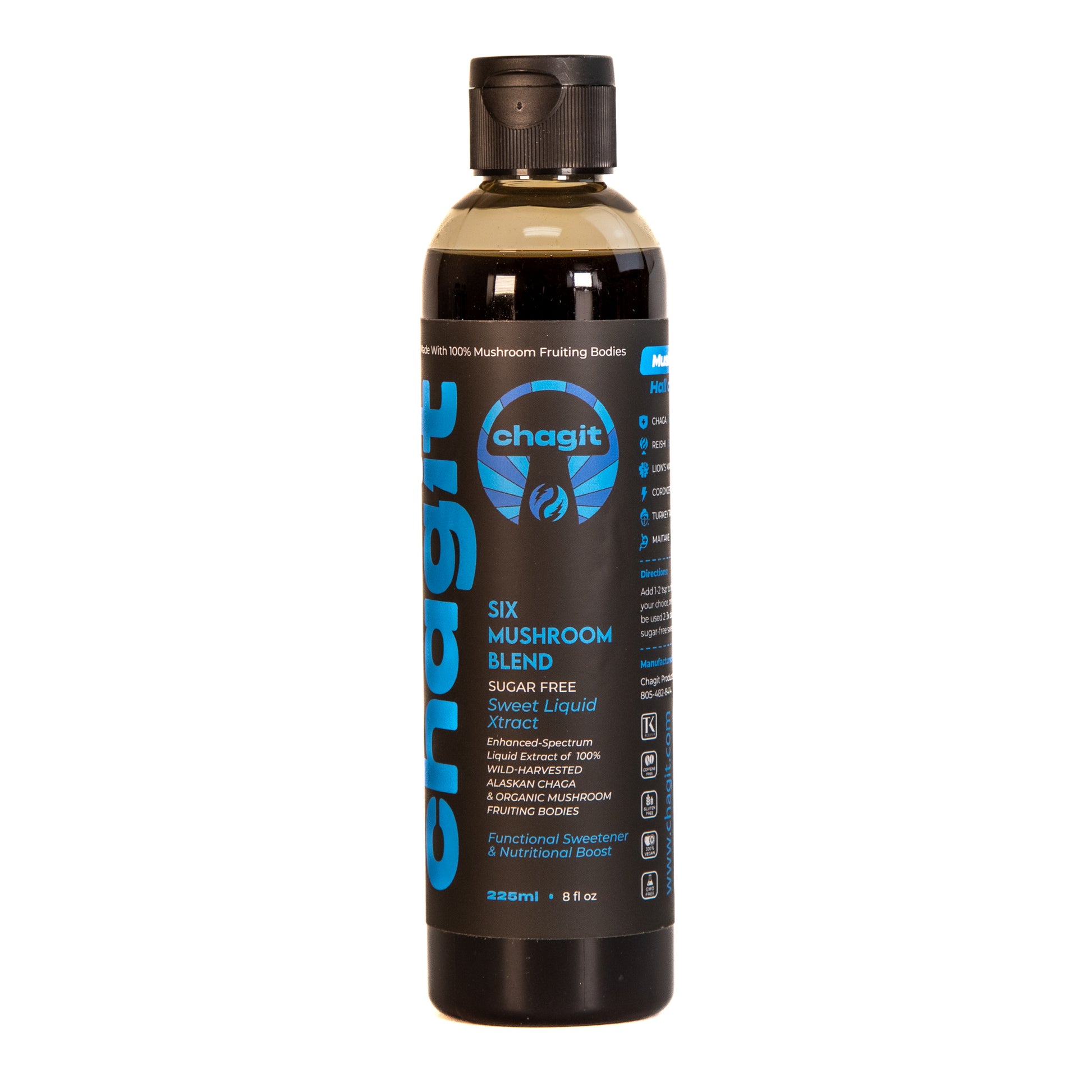 Mushroom Hall of Fame Chaga, lion’s mane, reishi, cordyceps, turkey tail and maitake. Each of them has been used in traditional medicine and shown in studies to have amazing benefits. They are broadly recognised as functional superfoods. Chagit Six Mushroom Blend Sweet Liquid Xtract is the best way to find out what functional mushrooms can do for you. Combined, these six mushrooms work synergistically to provide a wide range of potential health benefits.
